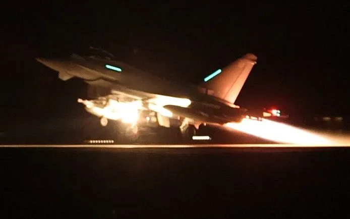 | Một chiếc máy bay Typhoon RAF cất cánh từ RAF Akrotiri vào 11/1 để tấn công các mục tiêu Houthi ở Yemen (Nguồn: Bộ Quốc Phòng Mỹ) |