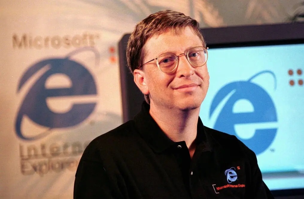 | Bill Gates, người đồng sáng lập Microsoft giới thiệu phiên bản mới nhất của trình duyệt web Internet Explorer tại San Francisco vào năm 1997 |