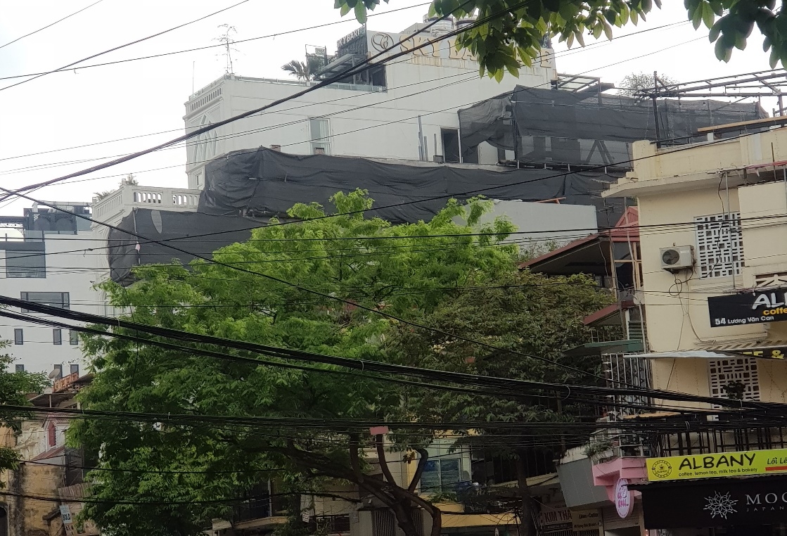 Theo quan sát của PV, công trình số 58 Hàng Gai nằm trong khu vực phố cổ, được quy định rõ về số tầng, cụ thể lớp nhà mặt phố được phép xây từ 1 - 3 tầng, lớp phía sau từ 2 - 4 tầng nhưng công trình số 58 Hàng Gai lại đang xây dựng với lớp ngoài đã đổ cột lên tầng 5, lớp trong công trình đã xây cột lên tầng 6, tầng 7 và chưa có dấu hiệu dừng lại, mật độ công trình 100%. Mặc dù chủ đầu tư đã cho quây bạt phần trên công trình đang thi công nhưng nếu quan sát kĩ vẫn thấy 1 phần tường tầng 6 (khoanh đỏ) đã được xây dựng xong.