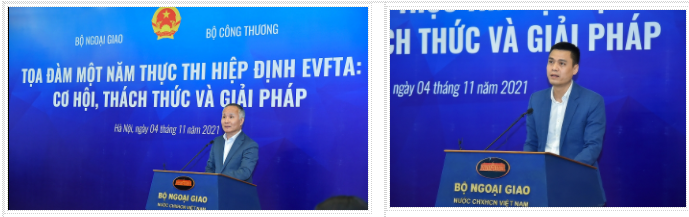Phát biểu khai mạc, Thứ trưởng Ngoại giao Đặng Hoàng Giang nhấn mạnh tầm quan trọng của quan hệ Đối tác và Hợp tác toàn diện Việt Nam – EU; khẳng định việc thực thi Hiệp định EVFTA từ tháng 8/2020 đã tạo xung lực mới cho quan hệ Việt Nam - EU, mở ra các cơ hội hợp tác rộng lớn, góp phần đẩy mạnh hoạt động giao thương, kết nối đầu tư cho cộng đồng doanh nghiệp và người dân. Sau hơn một năm đi vào triển khai, Hiệp định EVFTA đã mang lại nhiều kết quả tích cực. Trong 9 tháng năm 2021, tổng kim ngạch hai chiều giữa Việt Nam và EU đạt 41,29 tỷ USD, tăng 13,4% so với cùng kỳ năm 2020, trong đó, xuất khẩu đạt 28,85 tỷ USD, tăng 11,7%. Kết quả trên rất có ý nghĩa trong bối cảnh dịch Covid-19 bùng phát gây ảnh hưởng tiêu cực đến các hoạt động kinh tế, thương mại của các nước.